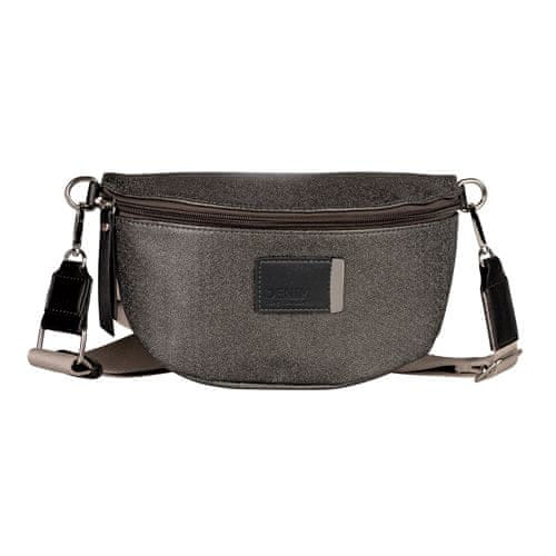 Elegantna ženska torbica za okoli pasu kompaktne oblike. Elegantna siva oblika z nežnim kovinskim sijajem. Celoten opis