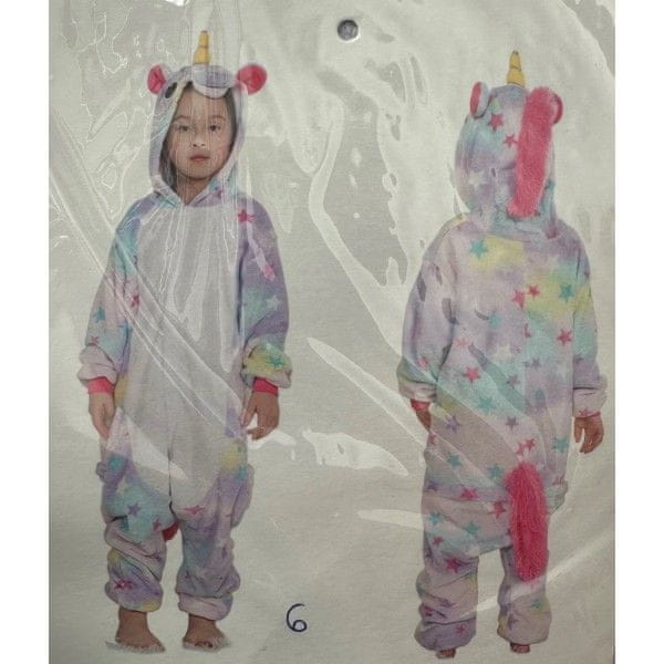 Enodelna pižamica samorog za 6 let starega otroka. Celoten opis