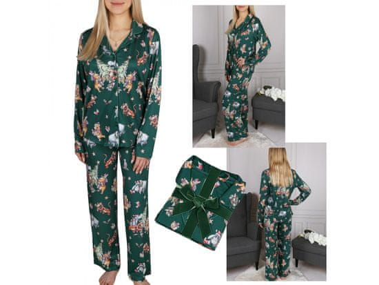 Elegantna in udobna ženska pižama z motivom Disneyjevih risanih junakov v živahni zeleni barvi.