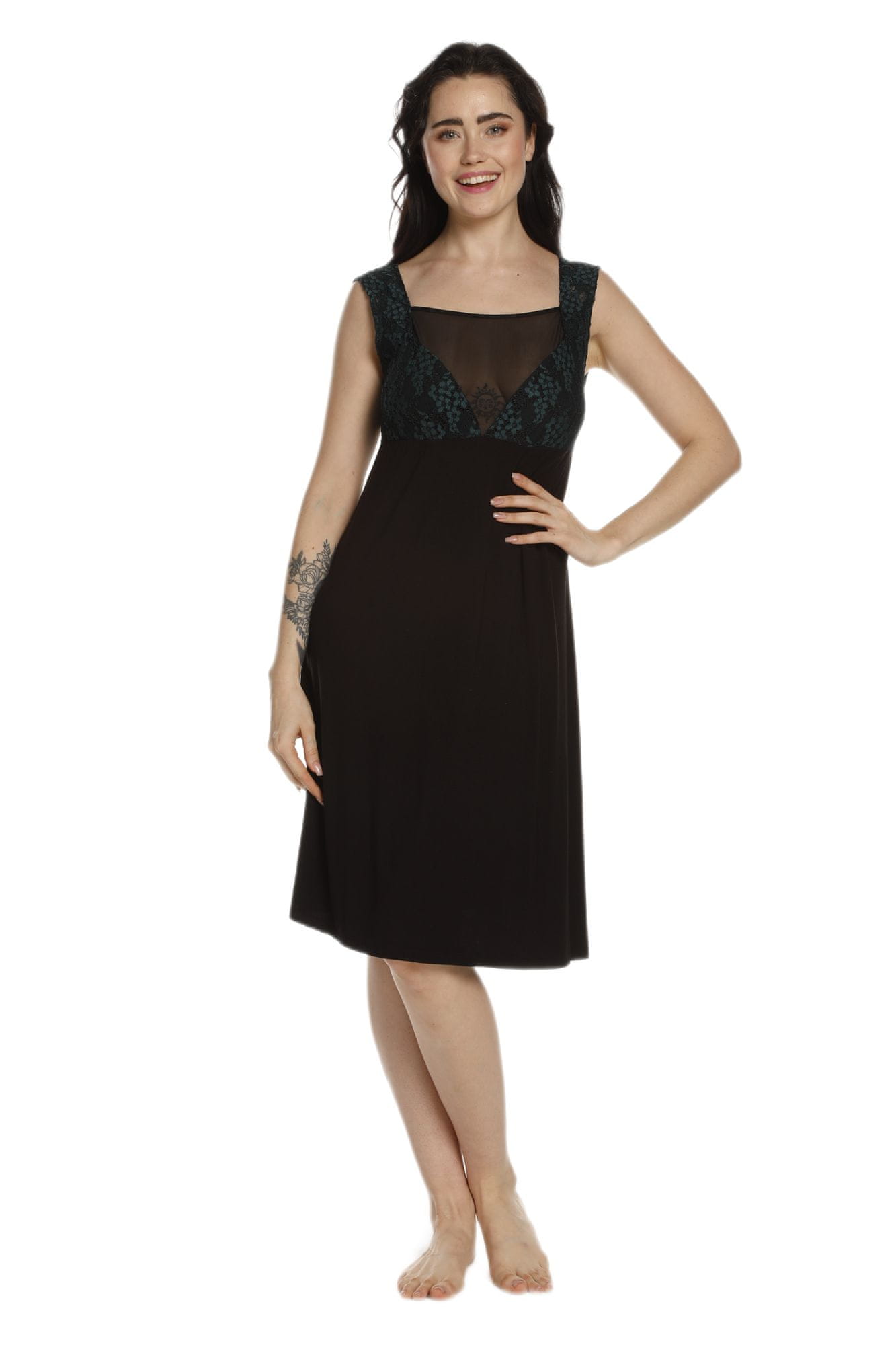 Zapeljiva črna ženska srajca. Zaradi smaragdnih čipkastih poudarkov na prsih in naramnicah je ta model popolna izbira za večerno obleko. Effetto v svojih izdelkih uporablja elitne čipke uglednih evropskih manufaktur. Bambus je okolju prijazen material, zelo mehak na dotik. Ne povzroča alergij. Ta izdelek je posamično pakiran! Čipkasta torbica. Takšna embalaža je okolju prijazna, saj ima neomejeno število uporab, oblačila pa skrbno pospravi v omari.