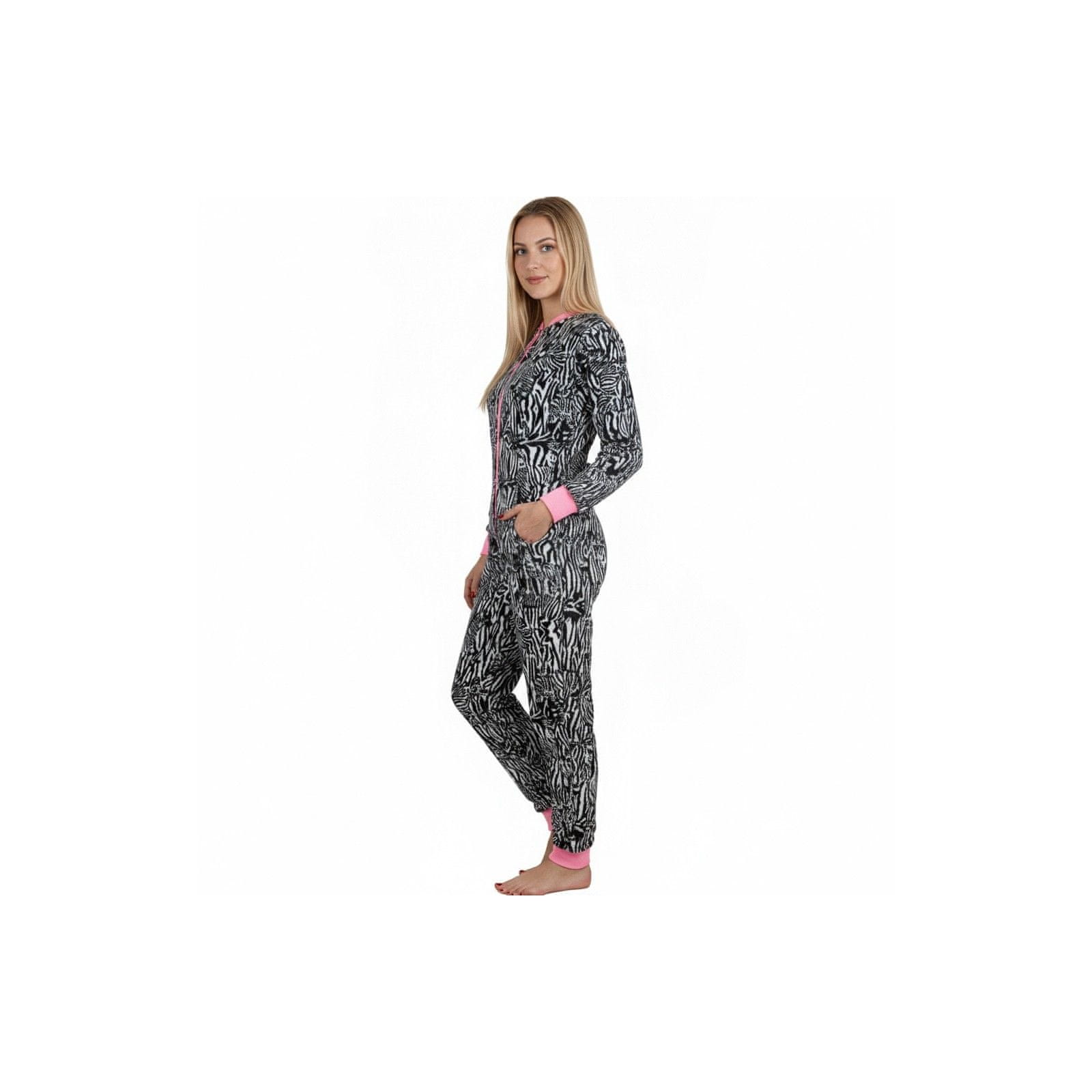 Ta topel in udoben ženski kombinezon z modnim zebrastim potiskom je odlična izbira za hladne večere in lenobna jutra.