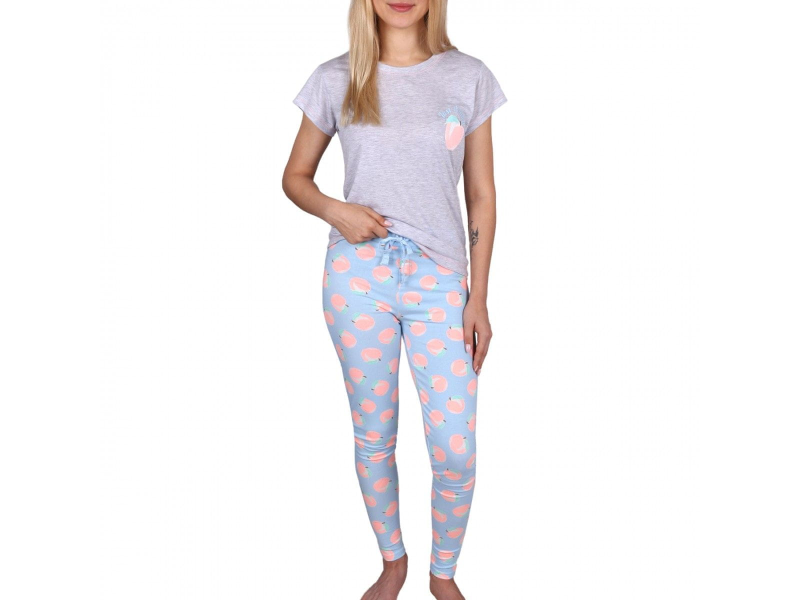 sarcia.eu Ženska pižama v sivi in modri barvi, breskve, dolge hlače S
