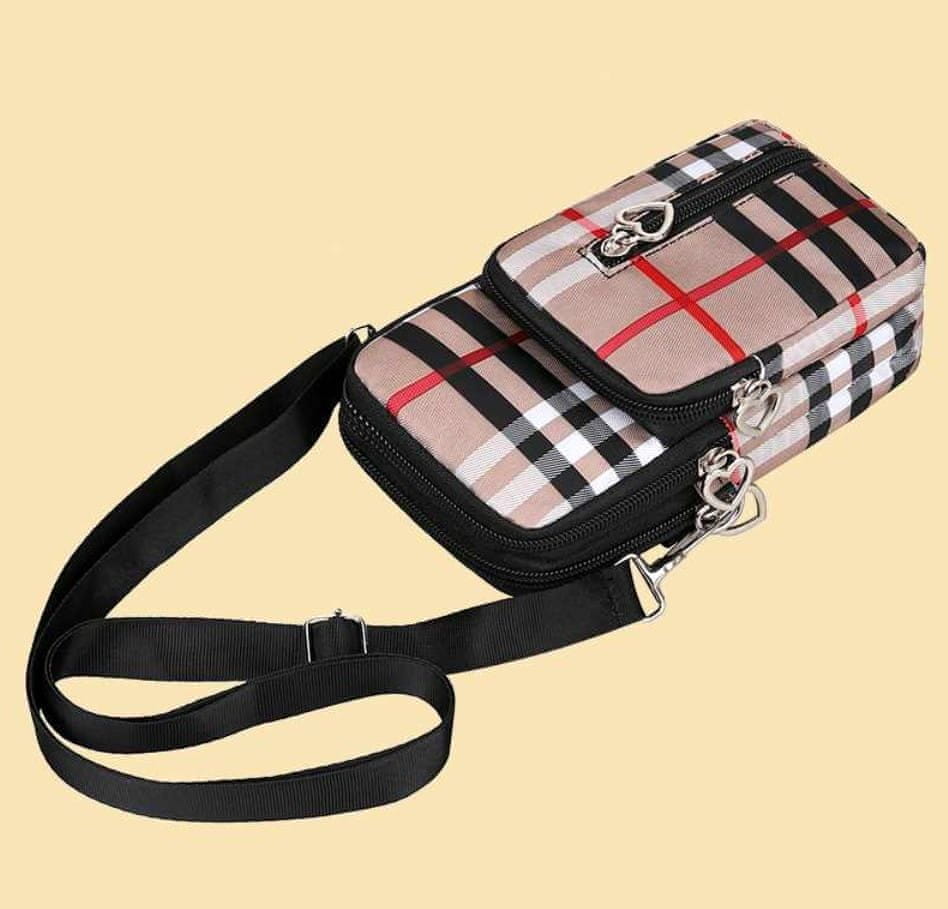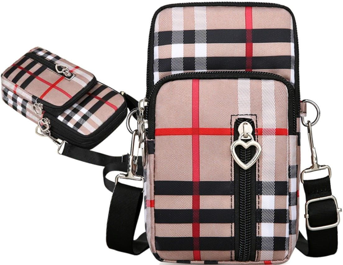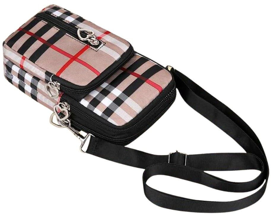 Camerazar Organizator za telefon čez ramo, kariran vzorec, vodoodporen material, 10x19x5 cm