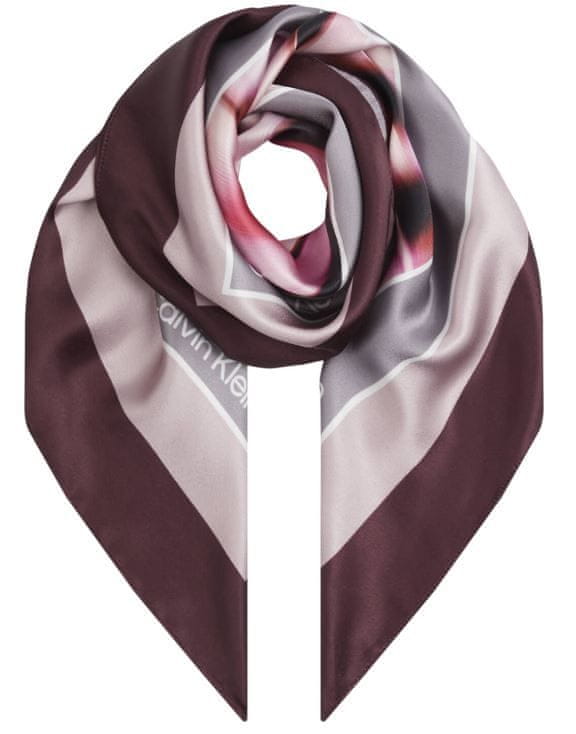 Ženski šal v sivi barvi. Okrašena s potiskom logotipa po vsej površini.