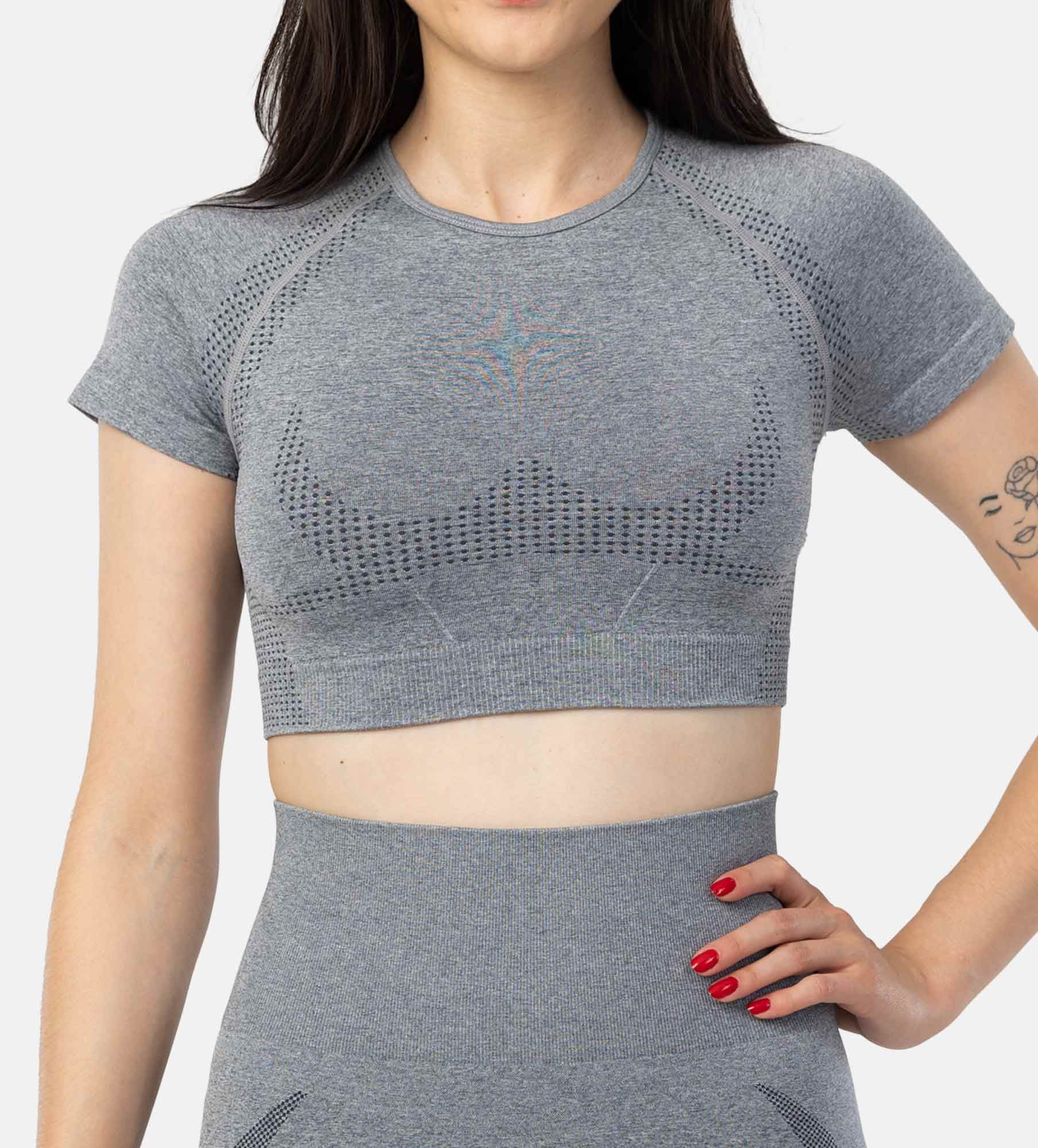LEAFLETIC ženske premium brezšivne kratke majice s kratkimi rokavi - udobne za šport in prosti čas, siva, S