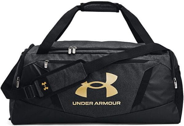 • Športna torba v temno sivi barvi s črnimi detajli in zlatim logotipom Under Armour,