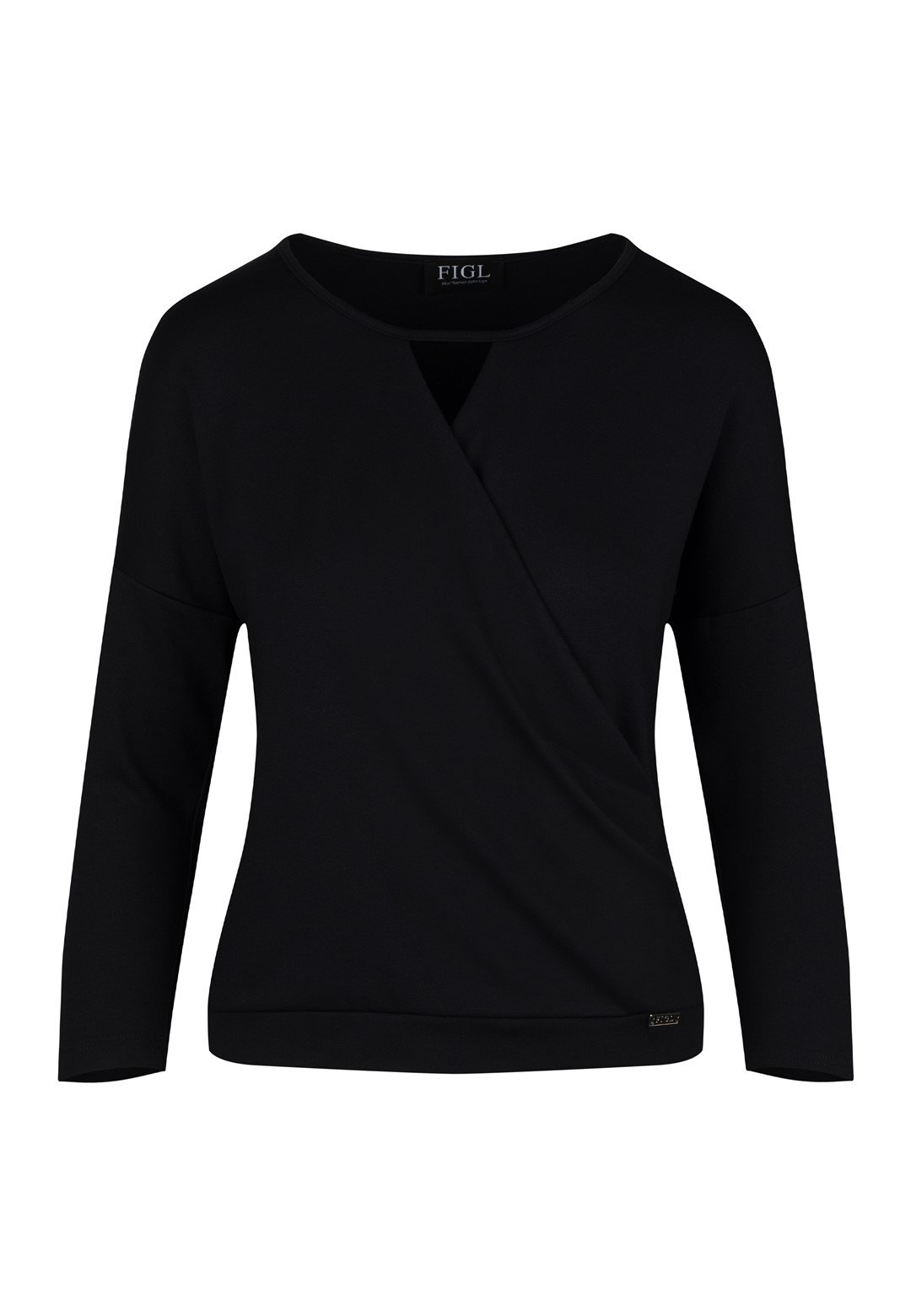 Popis:Črna elegantna kratka bluza z ovitim vratnim izrezom, zaključenim z okrasno obrobo, očarljivimi izpostavljenimi rameni, tremi rokavi, spodnji del je zaključen z vrvico.Materiál: 66% viskoza, 30% poliester, 4% elastan