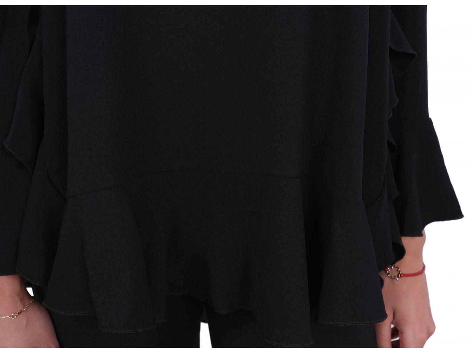 Rokavi so v obliki zvonca, spodnji del bluze je zaključen z volančki.