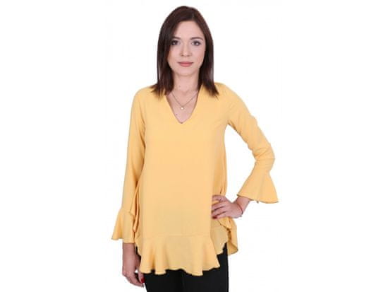 Rokavi so v obliki zvonca, spodnji del bluze je zaključen z volančki.