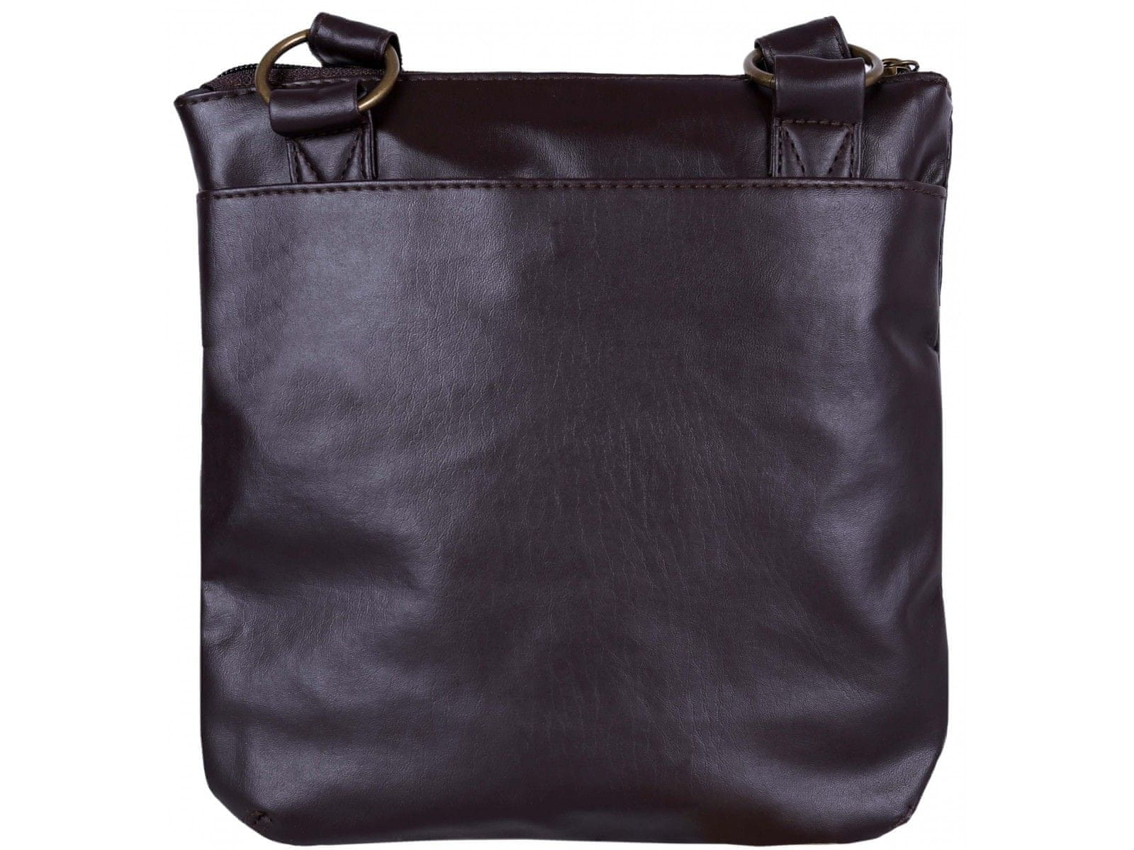 Temno rjava torba, ki se zapira z zadrgo. Izdelana iz mehke ekološke kože, z dolgim nastavljivim trakom. Spredaj in zadaj ima žep, ki se zapira z magnetom. Notranjost je obložena s temno rjavim materialom, z enim žepom na zadrgo. Elegantni in praktični dodatek bo vaši opravi dodal brezčasen slog! Se Celoten opis