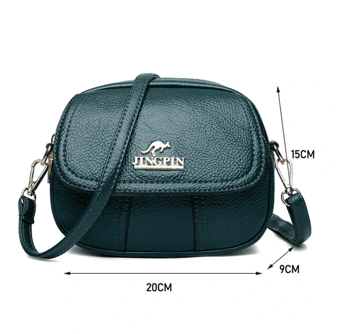 Odkrijte edinstveno eleganco in funkcionalnost ženske torbice iz ekološke usnje v privlačni zeleni barvi. Torba je izdelana iz trdnega ekološkega usnja, ki zagotavlja dolgo življenjsko dobo in stil. Zaradi svojega brezčasnega dizajna je primerna tako za dnevne izlete v mesto kot za večerna srečanja s prijatelji. Notranji prostor vsebuje dva glavna predala na zadrgo in praktično žep s poklopcem za drobnarije, kar zagotavlja popolno organizacijo vaših nujnih stvari.