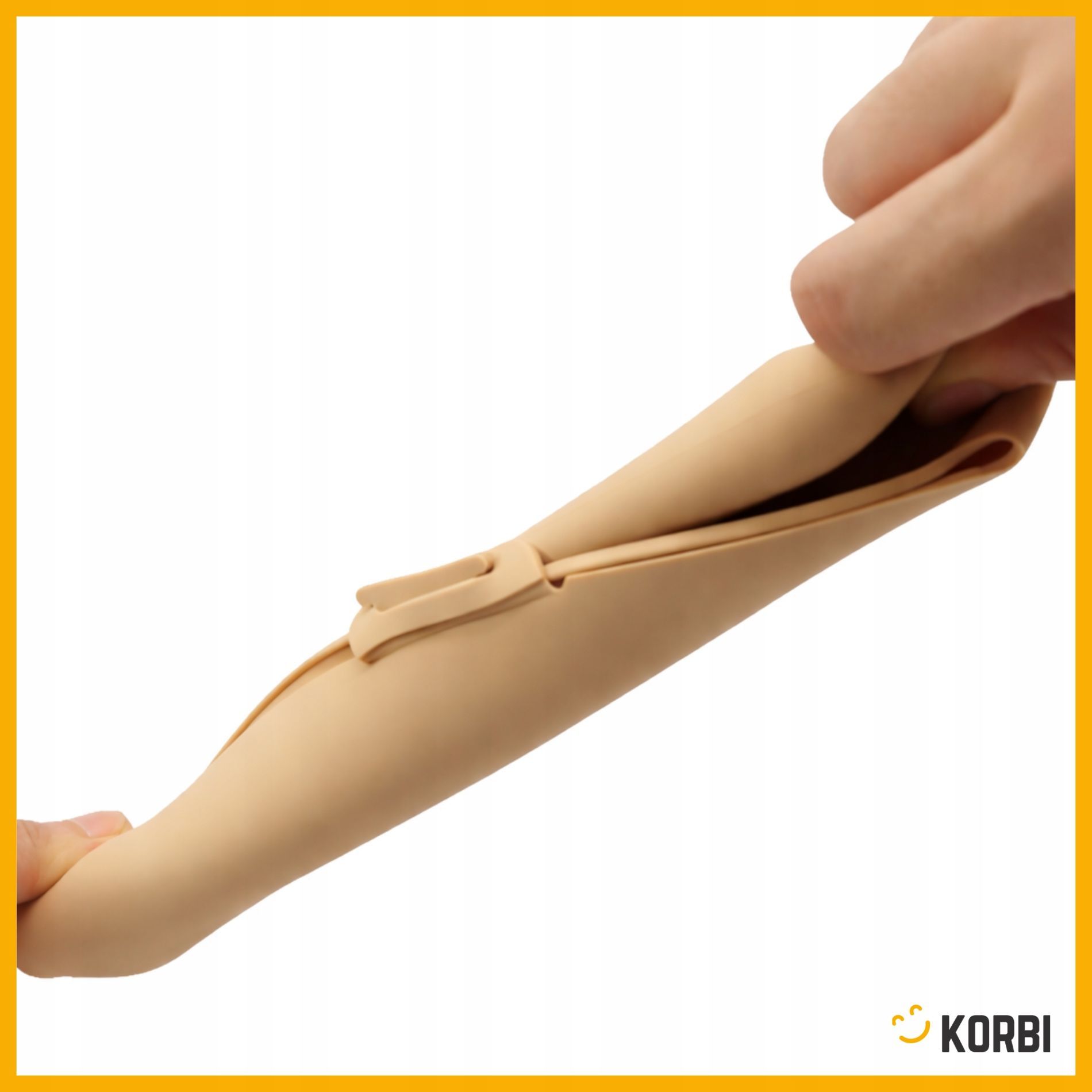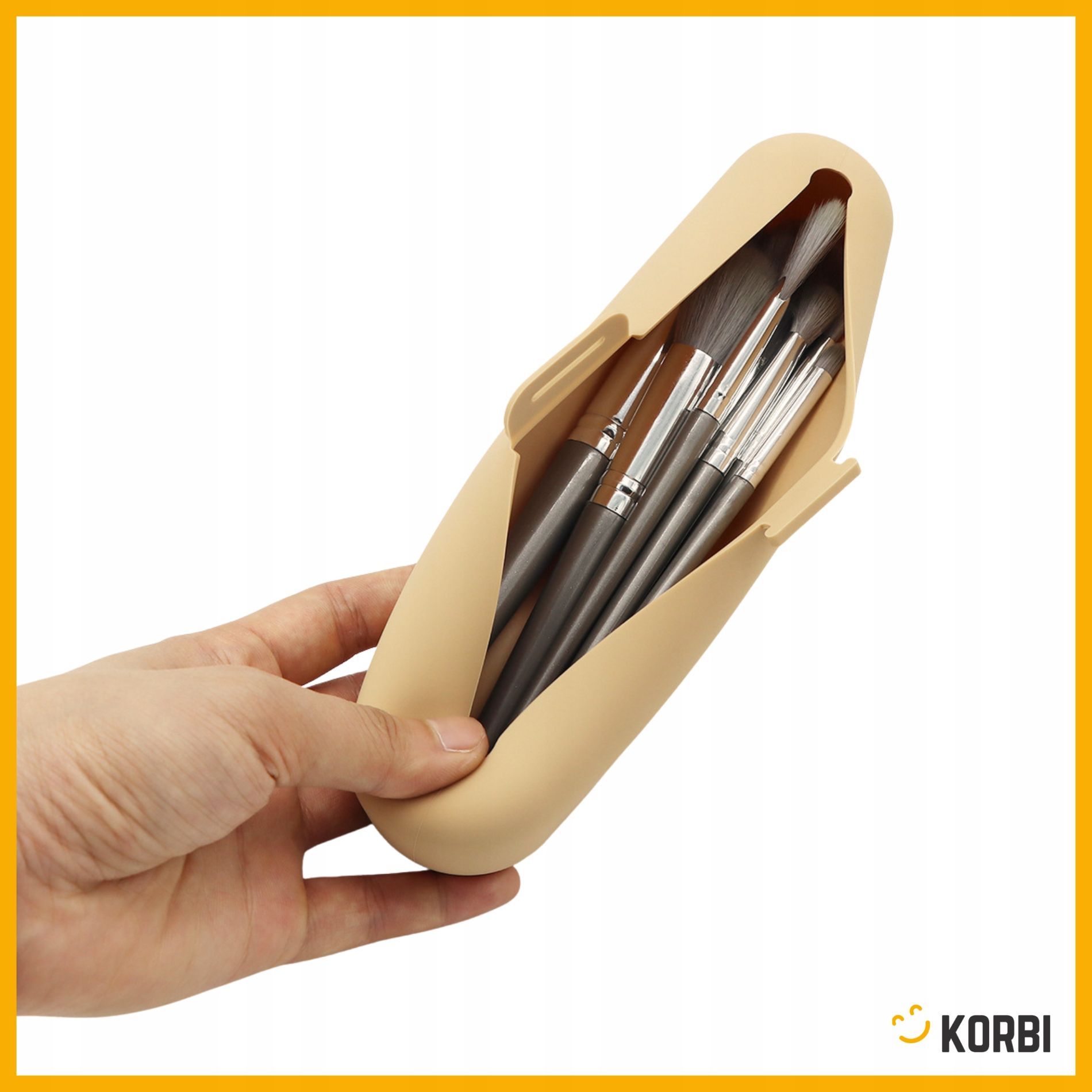 Praktičen in visokokakovosten potovalni silikonski etui za čopiče v bež (nude) barvi je idealna rešitev za varno shranjevanje in prenašanje ličilnih pripomočkov. Izdelan je iz elastičnega silikona, ki se prilagodi vsebini in učinkovito ščiti čopiče pred umazanijo, deformacijami ter poškodbami med transportom. Zapiranje z zadrgo poskrbi, da vsebina ostane na svojem mestu, kompaktna oblika pa omogoča, da etui brez težav spravite v torbico, kozmetično torbico ali kovček. Etui je vodoodporen in enostaven za čiščenje – po potrebi ga le sperete z vodo ali obrišete z vlažno krpo. Primeren je za čopiče za ličenje, kozmetične svinčnike in druge manjše dodatke, zato je odlična izbira tako za potovanja kot za vsakodnevno uporabo, ko želite imeti pripomočke urejene, zaščitene in pri roki. Dimenzije: Barva: bež / nude Material: elastični silikon Lastnosti: vodoodporno, 1 predal, brez vzorca, uniseks Stanje: novo, originalna embalaža EAN: 5906448710783