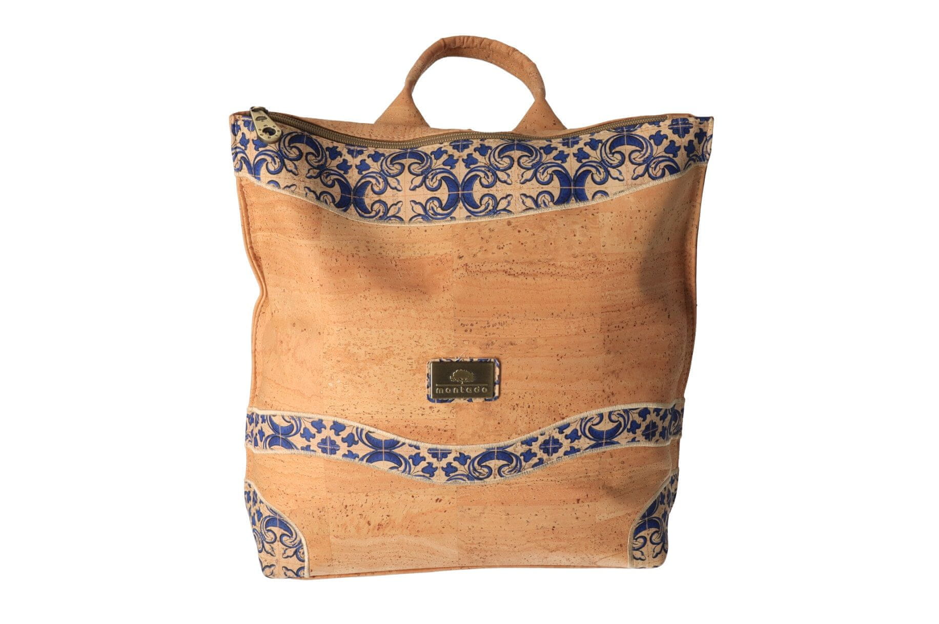 montado Ženski nahrbtnik-ročna torbica iz plute 2v1 z modrim cvetličnim vzorcem