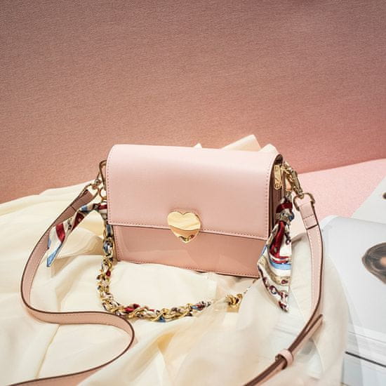 Priročna torbica Love je izdelana iz kvalitetnega umetnega usnja in doda vašemu izboru oblačil dodaten sijaj, zlati kovinski dodatki in srček na sprednji strani pa dodajo torbici eleganten videz. Priloženo verižico lahko uporabite kot naramni ročaj ali okras v kombinaciji z rutko.