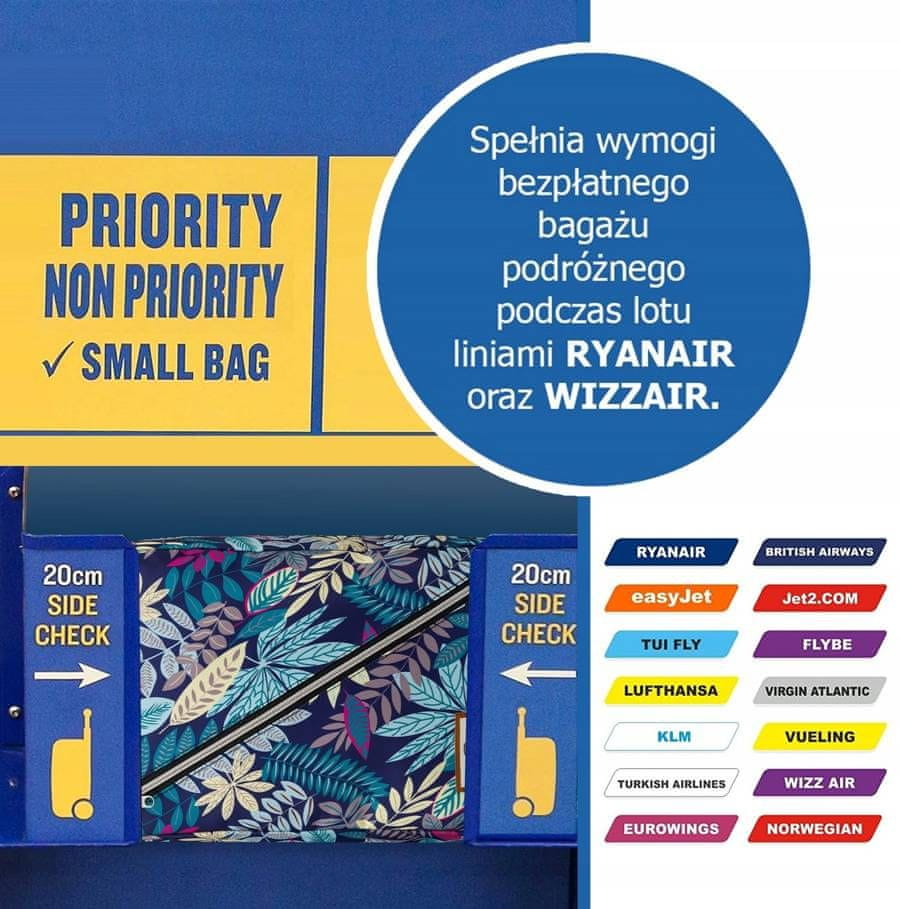 • Največje dimenzije brezplačne prtljage majhna ročna prtljaga naRyanair 40 × 25 × 20 cm, brez omejitve teže (mora biti pod sprednjim sedežem)