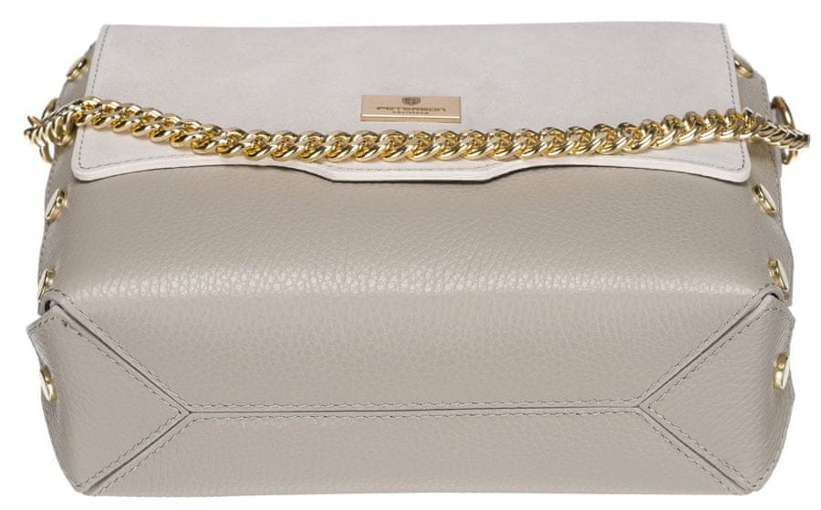 Pravokotna kurirska torbica z okrasno verižico PetersonMajhne kurirske torbice so nedvomno MUST HAVE vsake ženske. So zelo praktični in udobni – popolni so za situacije, ko potrebujete le najpomembnejše.Predstavljeni model je izdelan iz visokokakovostnega naravnega usnja, zelo trpežnega. Torba je ob Celoten opis