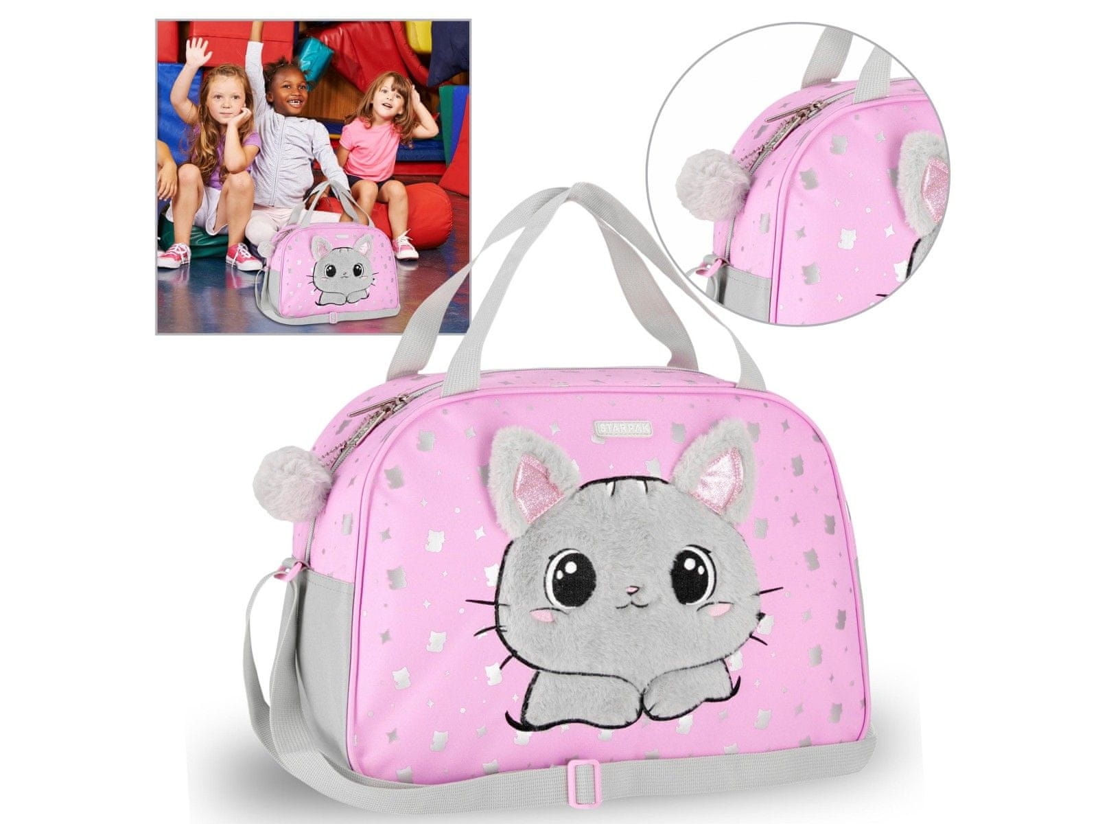 Ramenska torba STARPAK Plišast maček je odlična izbira za dekleta, ki rada združijo funkcionalnost s prikupnim dizajnom.