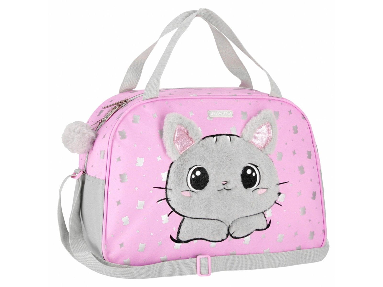 STARPAK Športna torba za dekle mačka, roza torba za telesno vzgojo, potovanje, za ramo 39x27x16 cm