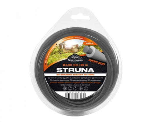 Kosilec PROFI DUO je zasnovan za strunske kosilnice in kosilnice za grmovje. Zlasti za delo v zahtevnejših razmerah. Struna je sestavljena iz 30 odstotkov togega ogljikovega jedra in 70 odstotkov prožnejšega zunanjega plašča. Kombinacija teh dveh elementov zagotavlja večjo trdoto, pa tudi prožnost strune ter bistveno prispeva k večji vzdržljivosti strune in manjši porabi strune. Enostavna namestitev v rezalno glavo. Barva: siva. Profil: okrogel. Premer: 3 mm. Dolžina: 20 m.
