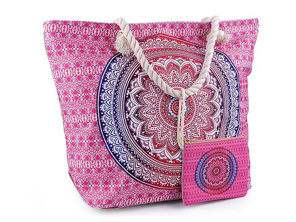 Poletna / plažna torba mandala, paisley z vrečko 39x50 cm - roza