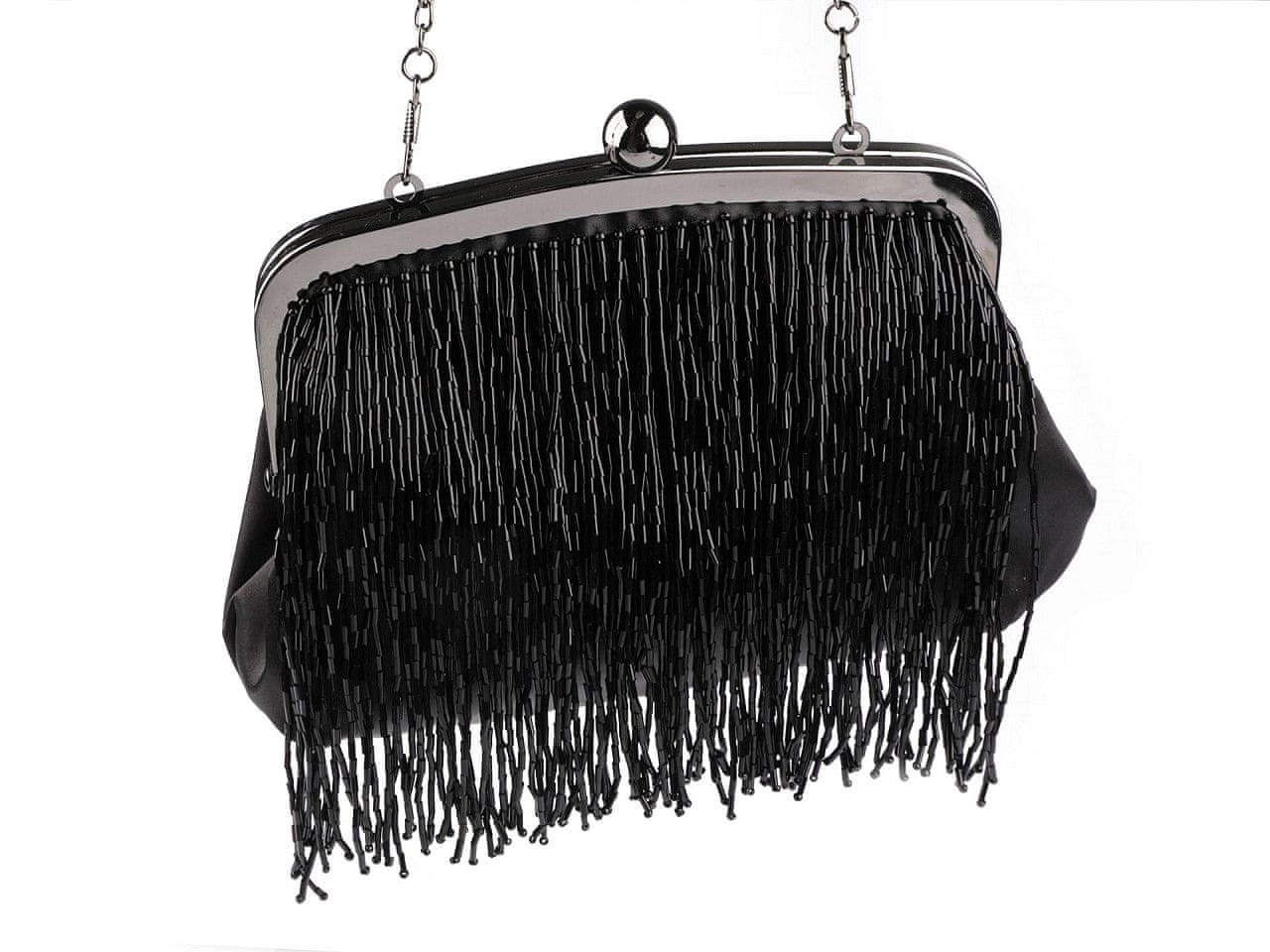 Elegantna satenasta torbica je popoln dodatek za vsak družabni dogodek. Spada med luksuzne kose, njena sprednja stran je okrašena s svetlečimi rokajskimi obrobami, torbica je nepogrešljiva. Ima svetleč kovinski okvir z zaponko, v notranjosti pa boste našli majhen žepek za drobnarije. Torbici je priložena tudi dolga snemljiva verižica s karabinčki. Nosite jo lahko v roki ali kot križno torbico čez ramo ali križnico.