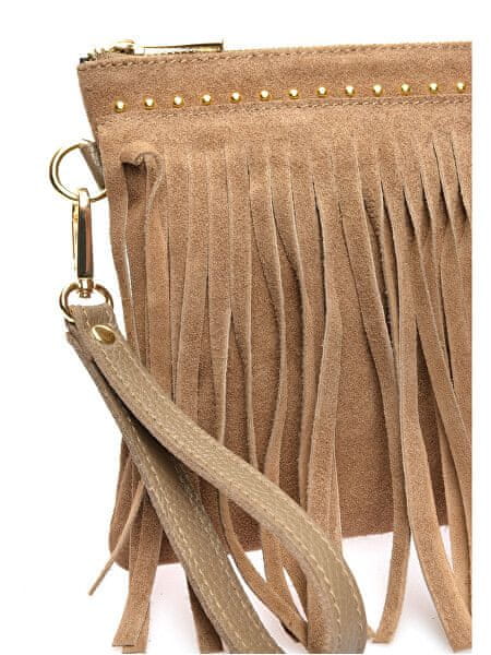 Modna torbica v bež barvi. Okrašena z nežnimi trepalnicami. Celoten opis