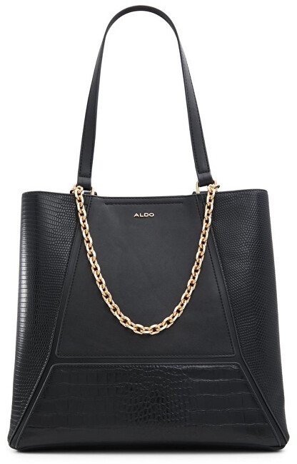 Opomba Ženska torbica, črna, z zlatimi elementi, prozorna notranjost, zapiranje z magnetom, okrašena z zlato verižico, dolgi udobni ročaji. Celoten opis