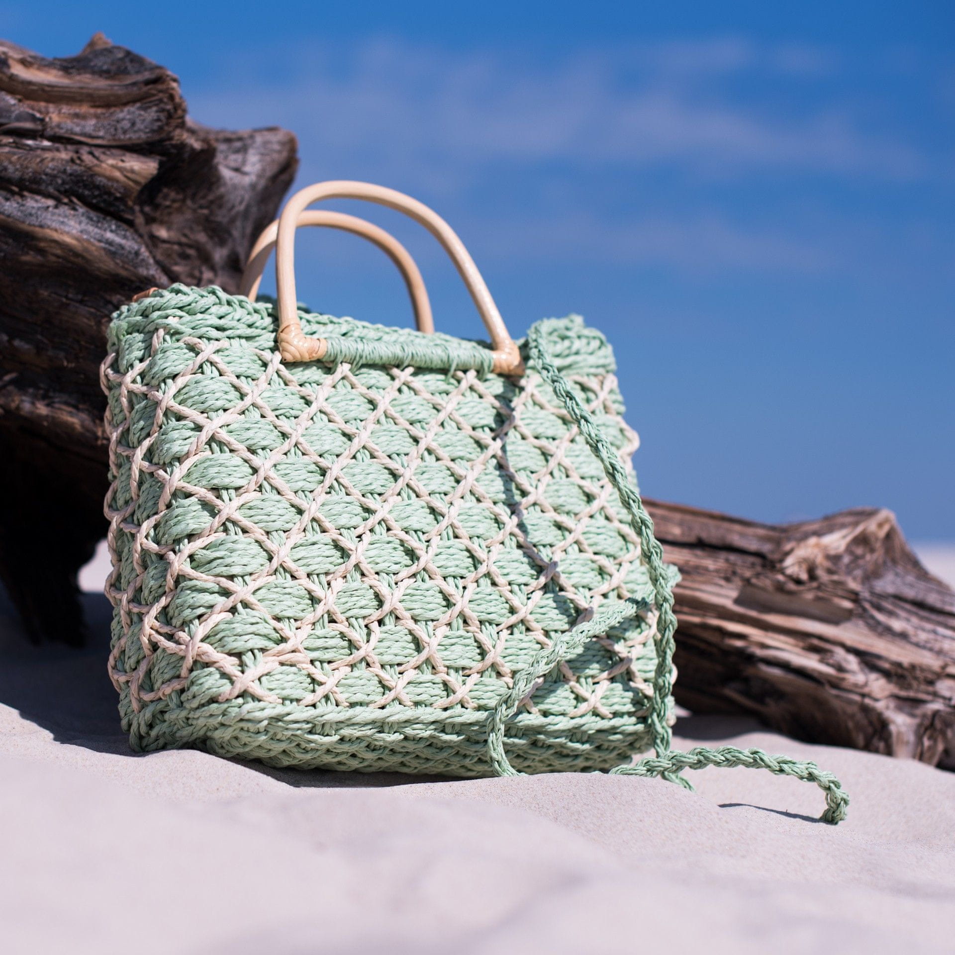 Popis:Poletna torbica v obliki košare. Podloga v notranjosti. Ima snemljiv pas. Idealna za ljubitelje izvirnih dodatkov.Materiál: 100% papir