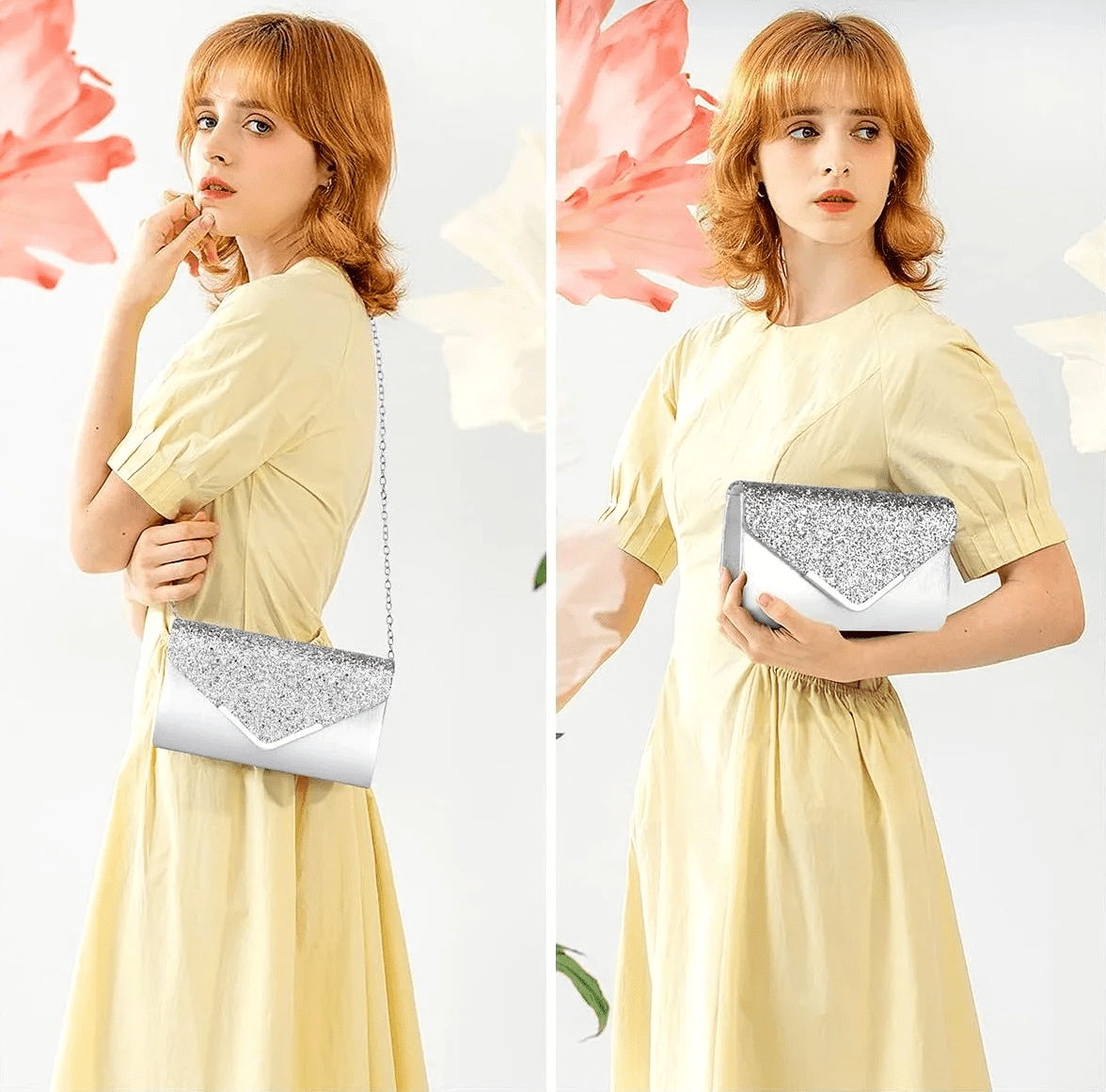 Odkrijte elegantno žensko večerno torbico čez ramo, ki je idealna za družabne dogodke, kot so poroke in praznovanja, hkrati pa je tudi odlična za vsakodnevno nošenje.