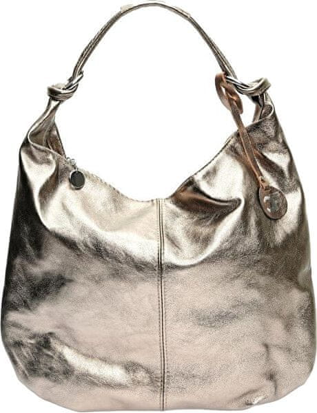 Elegantna ženska torbica v kovinskem bronastem odtenku. Izdelana iz mehkega in udobnega usnja. Celoten opis