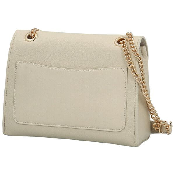 Ženska torbica z elegantnim zavihkom in okrasnim kovinskim zapiralom. V kremni barvi. Celoten opis