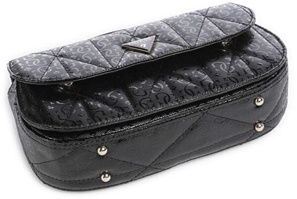 Elegantna torbica v črni sijoči izvedbi z monogramom 4G. Sprednji zavihek z magnetnim zapiranjem in kovinskim trikotnim logotipom Guess. Celoten opis