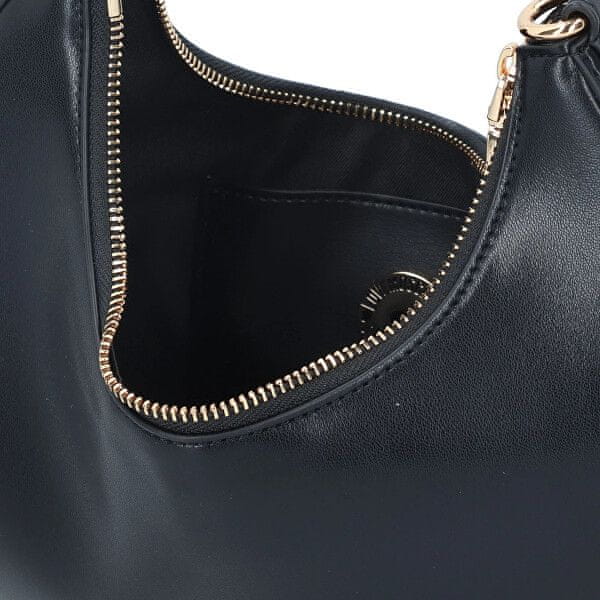 Ženska črna torbica. Z logotipom znamke na sprednji strani. Celoten opis