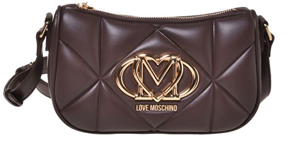 Temno rjava torbica iz kolekcije Love Moschino z elegantnim reliefnim vzorcem. Z mehkim sijajem. Celoten opis