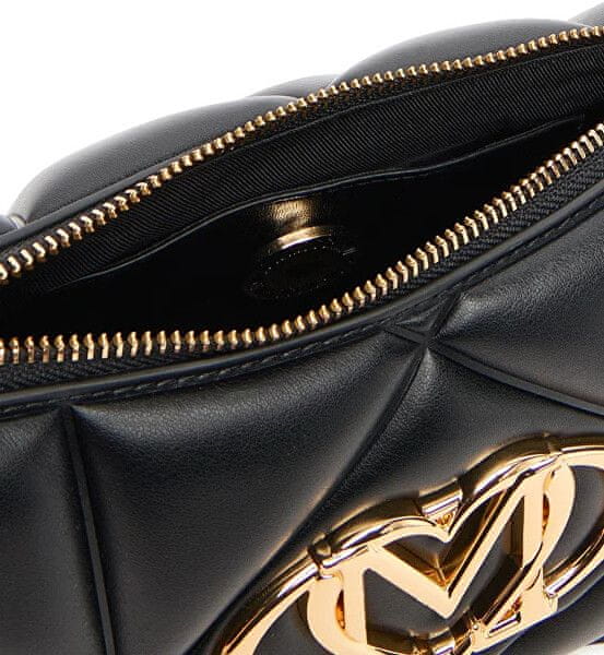 • Črna torbica iz kolekcije Love Moschino z modernim reliefnim vzorcem,