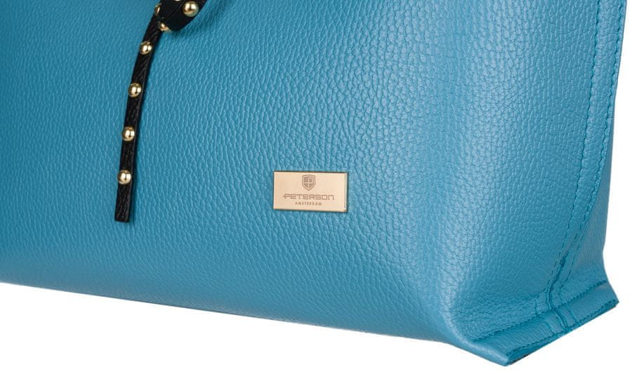 Peterson Ženska nakupovalna torba v obliki trapeza iz naravnega usnja okrašena z kamenčki