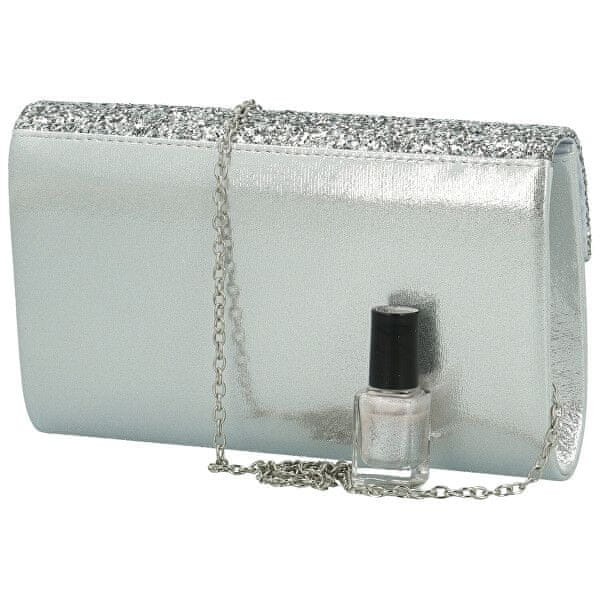 Elegantna večerna torbica v srebrnem odtenku z izrazitim bleščicami. Zgornji del, posut z bleščicami, za bleščeč učinek pri vsakem gibu. Celoten opis