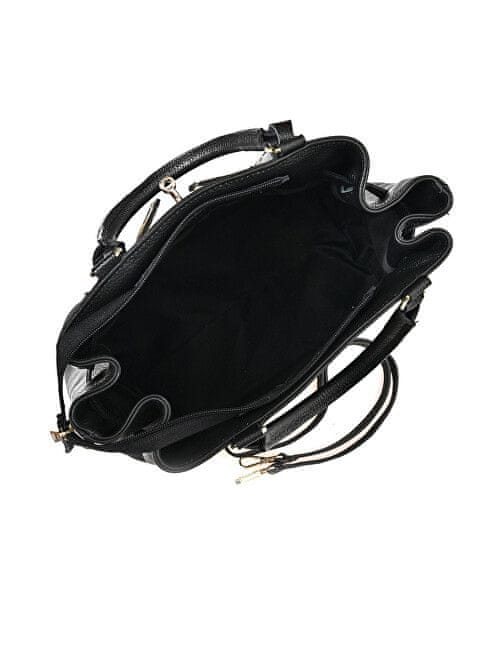 Opomba Ženska usnjena torbica, črna, glavni žep na zadrgo, notranji žep na zadrgo, višina ročaja 34 cm, nastavljiv naramni trak z največjo dolžino 100 cm. Celoten opis