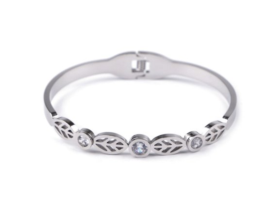 Zapestnica iz nerjavečega jekla s kristali - srebrni list