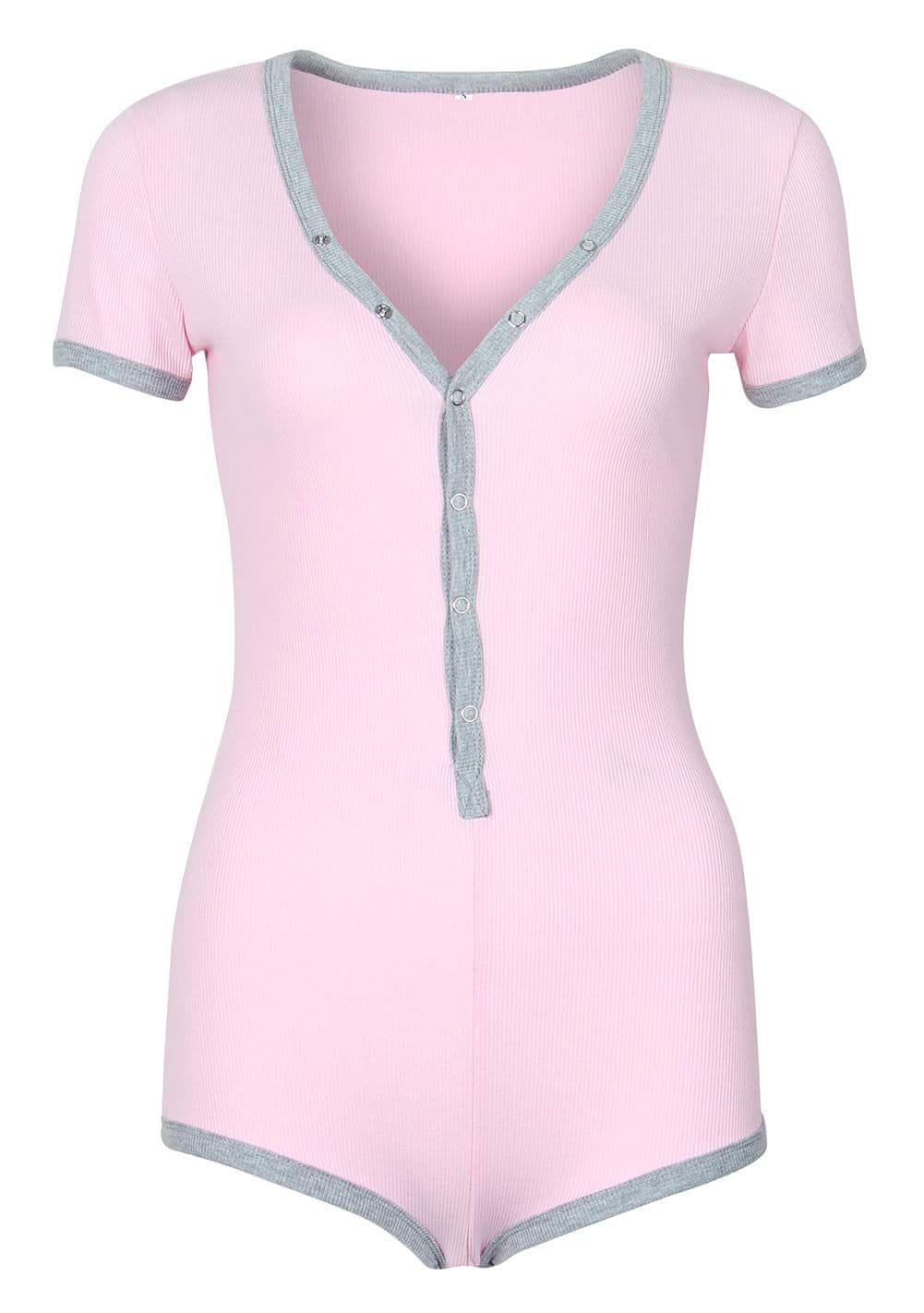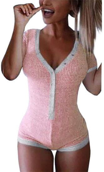 Ženski bodi rožnato-siv s kratkimi rokavi, dekoltejem in gumbi M