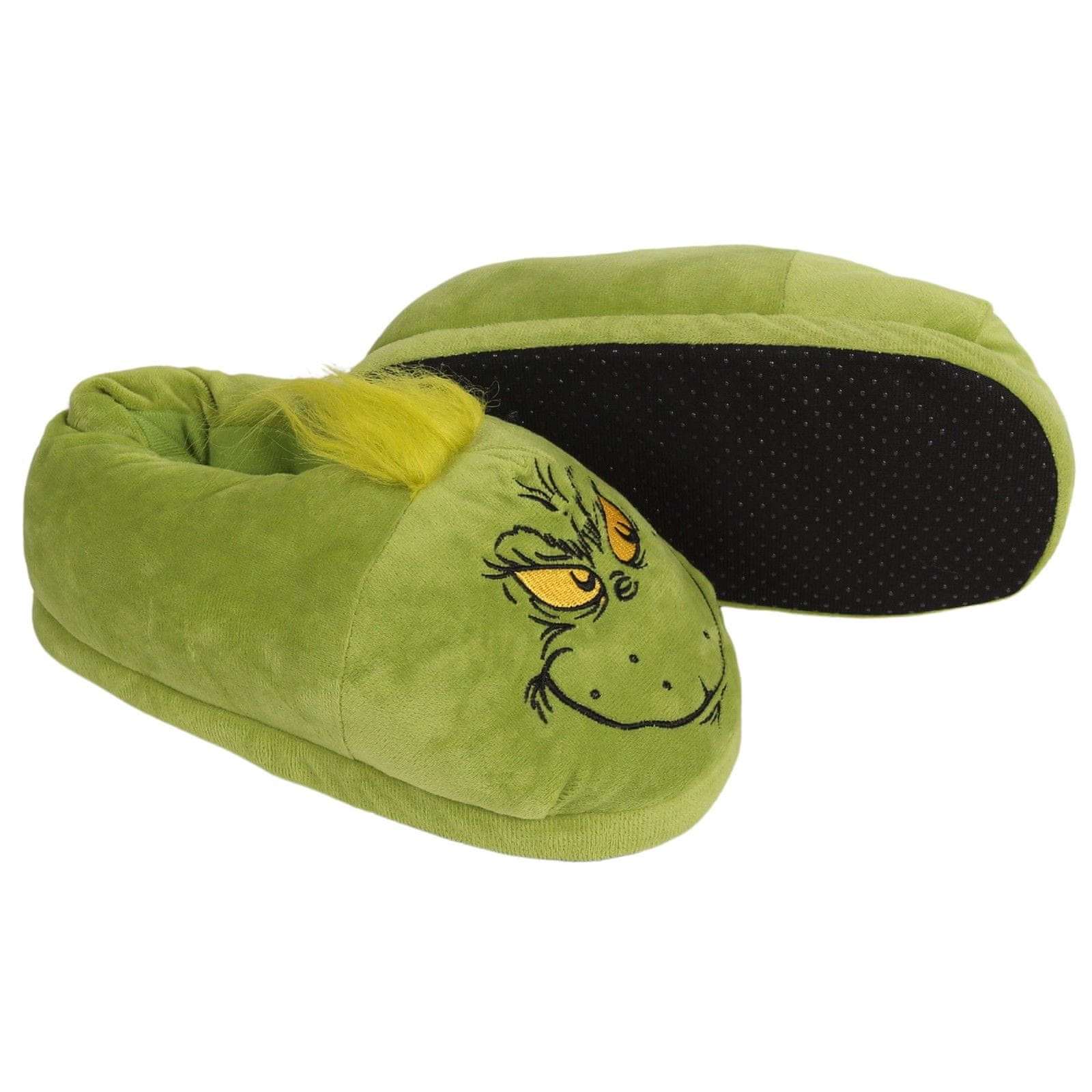 Na sprednji strani so izvezene Grinch značilne oči in nasmeh, copate pa krasi tudi „pričeska“ iz mehkih ščetin.