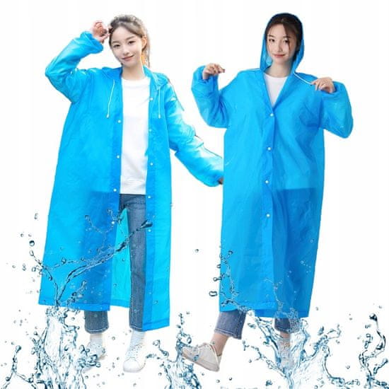 Dežni plašč je izdelan iz trpežnega, vodoodpornega materiala, ki učinkovito ščiti pred dežjem in zagotavlja dobro prezračevanje. Njegova modra barva ga naredi univerzalnega in primernega za različne stile. Celoten opis