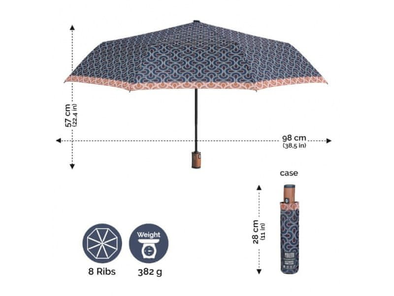Perletti PERLETTI Technology, Ženski popolnoma avtomatski zložljivi dežnik Fantasia / zelena obloga, 21752