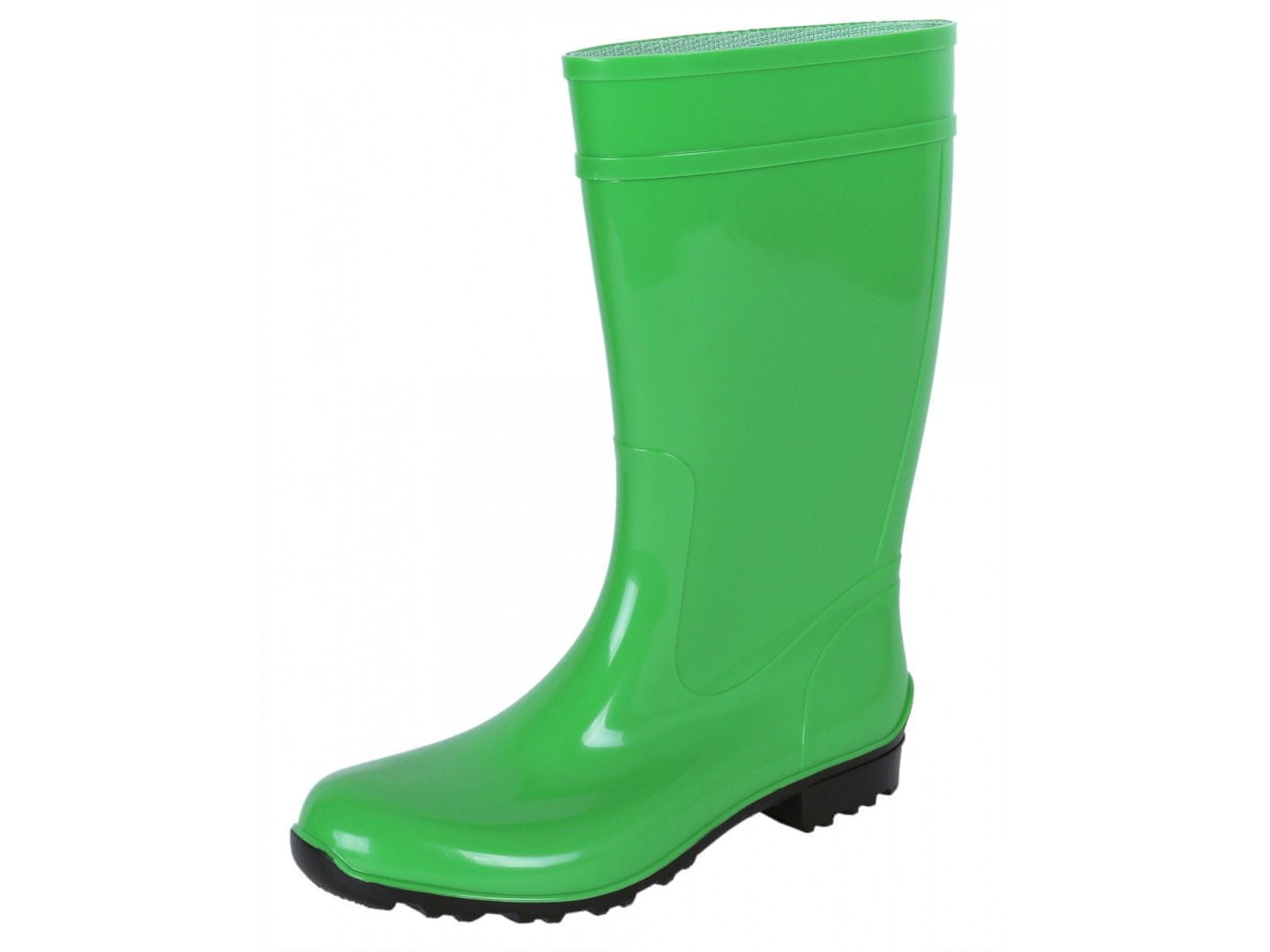 Univerzalni in brezčasni jasnozeleni gumijasti škornji iz visokokakovostnega PVC materiala.