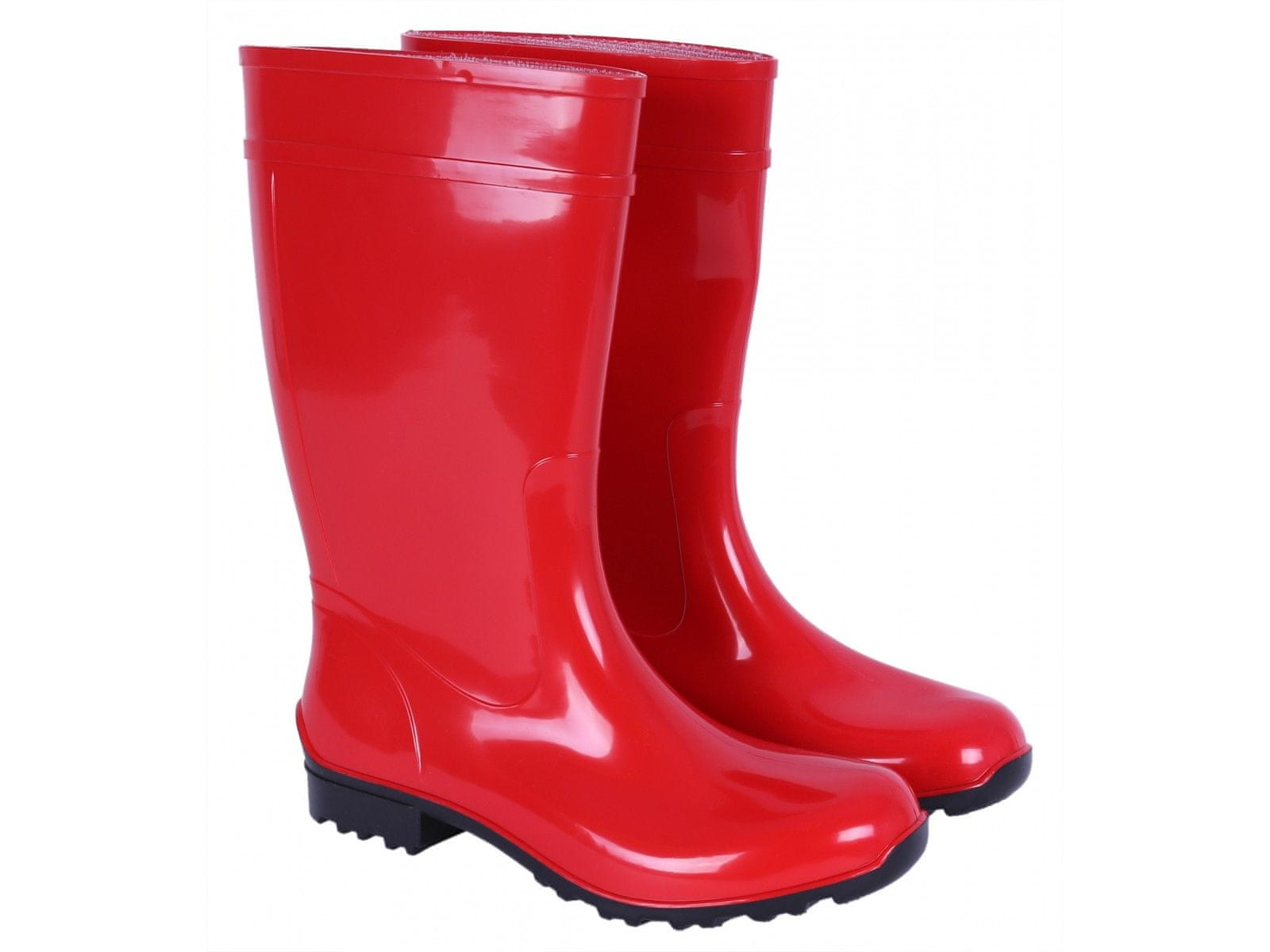 Univerzalni in brezčasni, rdeči škornji izdelani iz visokokakovostnega gumijastega PVC materiala.