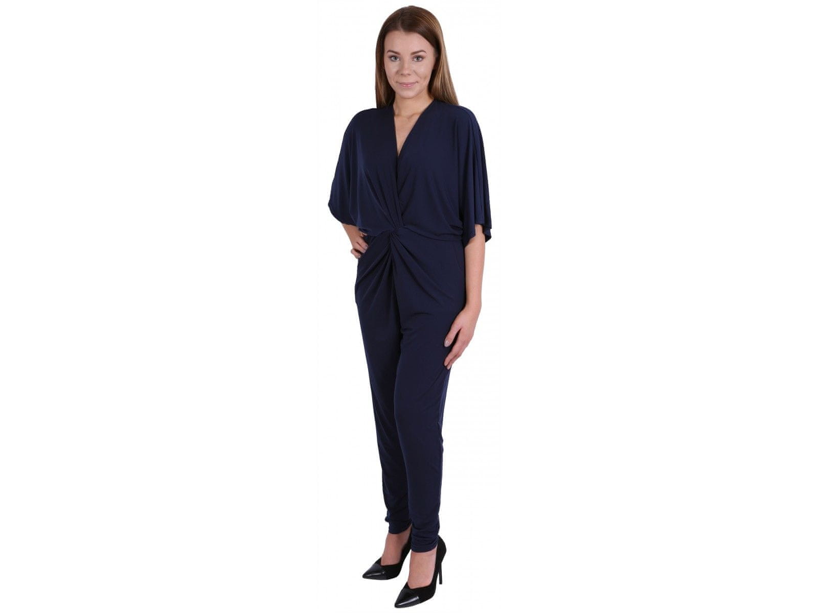 Čudovit, seksi kombinezon v zelo elegantnem slogu. Ima preklopni dekolte in naborke v pasu, ki lepo poudarijo pas. Kombinezon ima dve žepi ob strani. Ožji hlačnice in široki rokavi ustvarjajo iluzijo postave v obliki peščene ure. Narejen je iz mehke in prijetne tkanine na dotik. Velikosti oblačil so Celoten opis