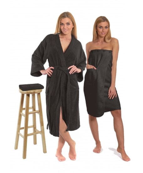 Interkontakt Komplet črne čokolade: kopalni plašč KIMONO + ženski kilt za savno + kopalna brisača Kopalni plašč velikost L