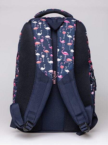 Originalen nahrbtnik z značilnim potiskom flamingov po celotni površini. Temno moder dizajn s kontrastnim logotipom. Celoten opis