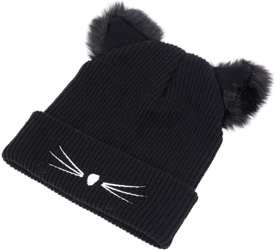 Camerazar Damska zimska kapa mačka z ušesi, črna, akrilni pleten, univerzalna velikost