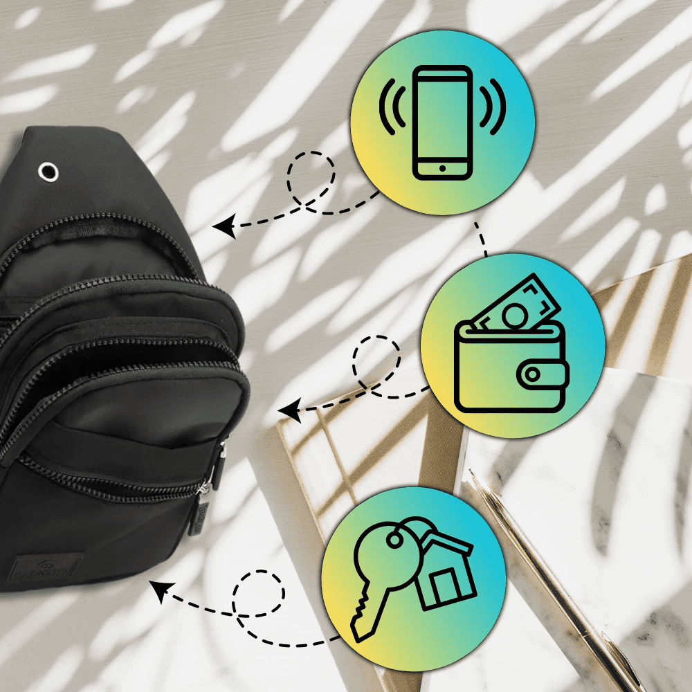 Nahrbtnik je opremljen s glavno komoro in dvema žepoma na zadrgo, zaradi česar zlahka sprejme vse potrebno, kot so telefon, denarnica ali kozmetika. Njegov nastavljiv trak (od 70 cm do 130 cm) zagotavlja idealno prilagoditev za vsakega uporabnika.
